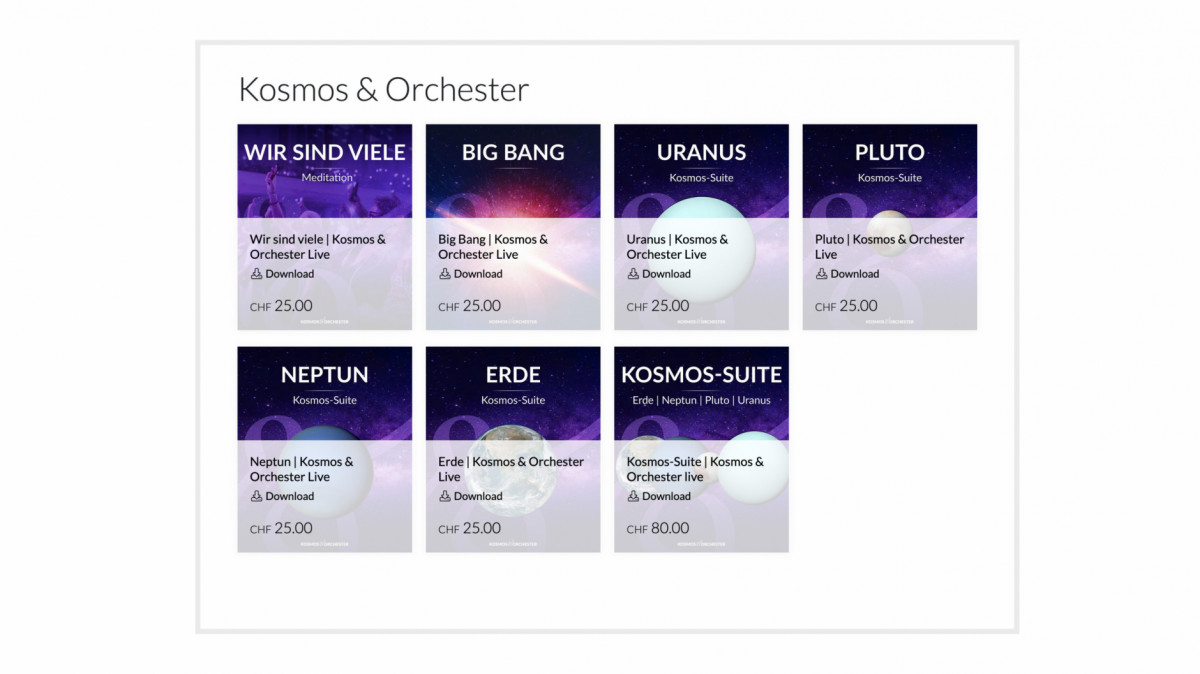 Die Planeten-Musiken Erde, Neptun, Pluto und Uranus sind sowohl einzeln als auch in einem Bundle als "Kosmos-Suite" erhältlich.